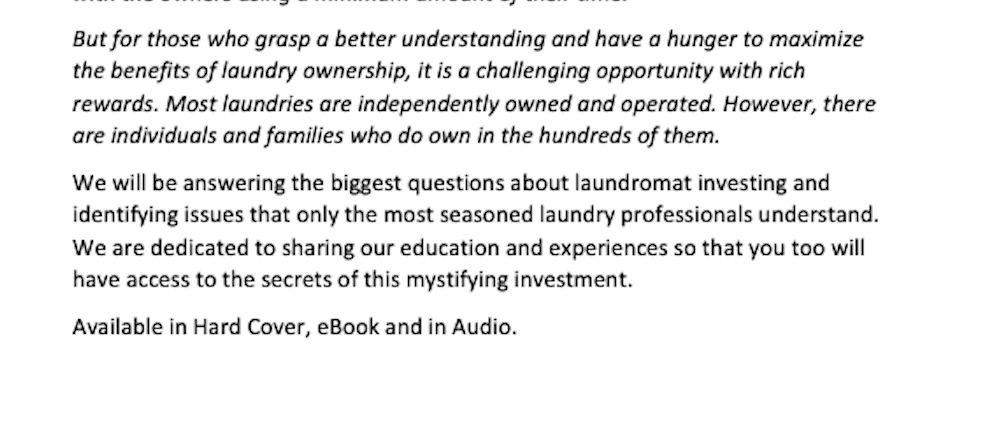 The Laundry Business is a secure, recession resistant and easy business to own and operate - if you start out on the right foot.